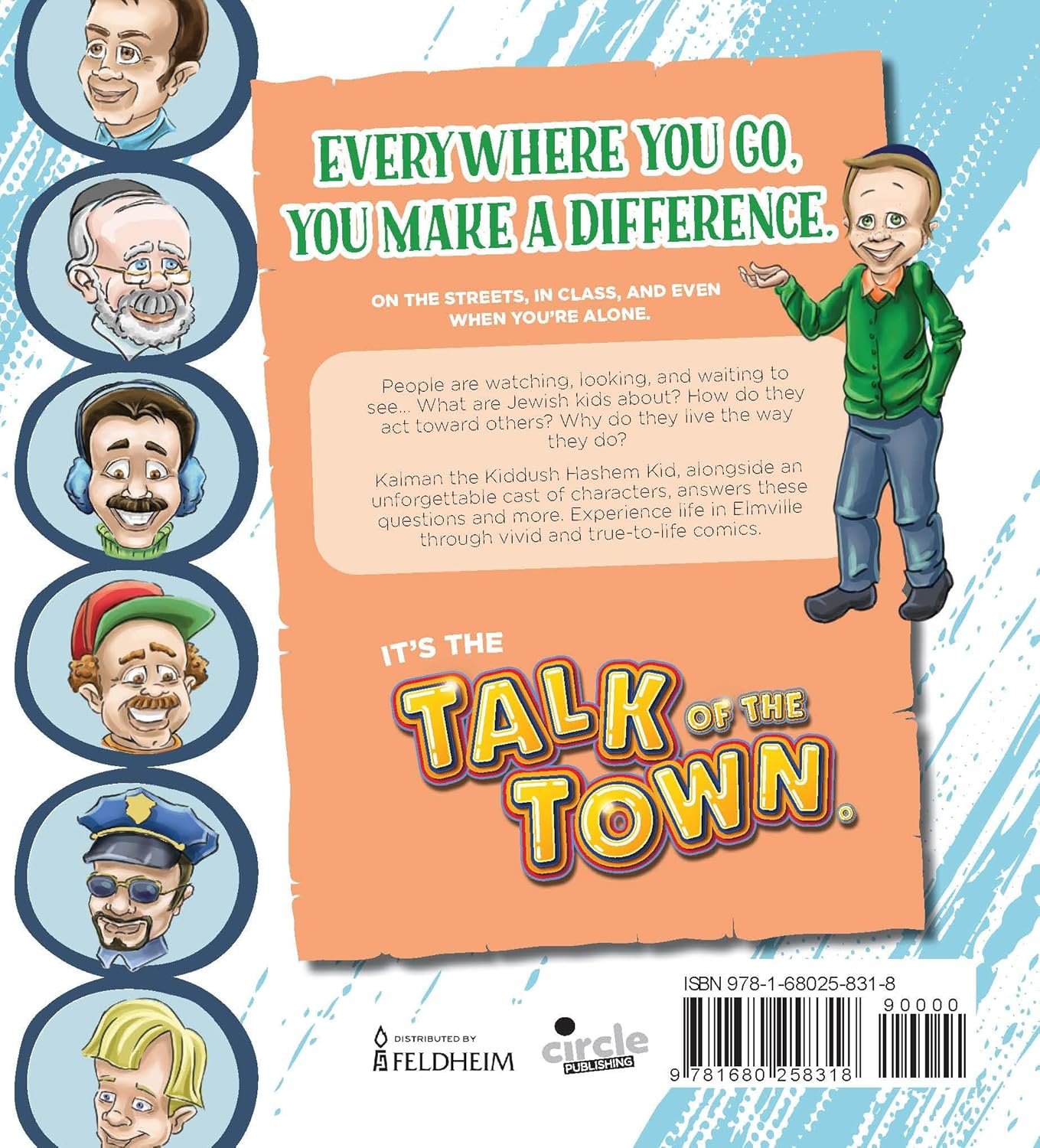 People are watching, looking, and waiting to see… What are Jewish kids about? How do they act toward others? Why do they live the way they do? Kalman the Kiddush Hashem Kid, alongside an unforgettable cast of characters, answers these questions and more. Experience life in Elmville through vivid and true-to-life comics. It’s the Talk of the Town.
